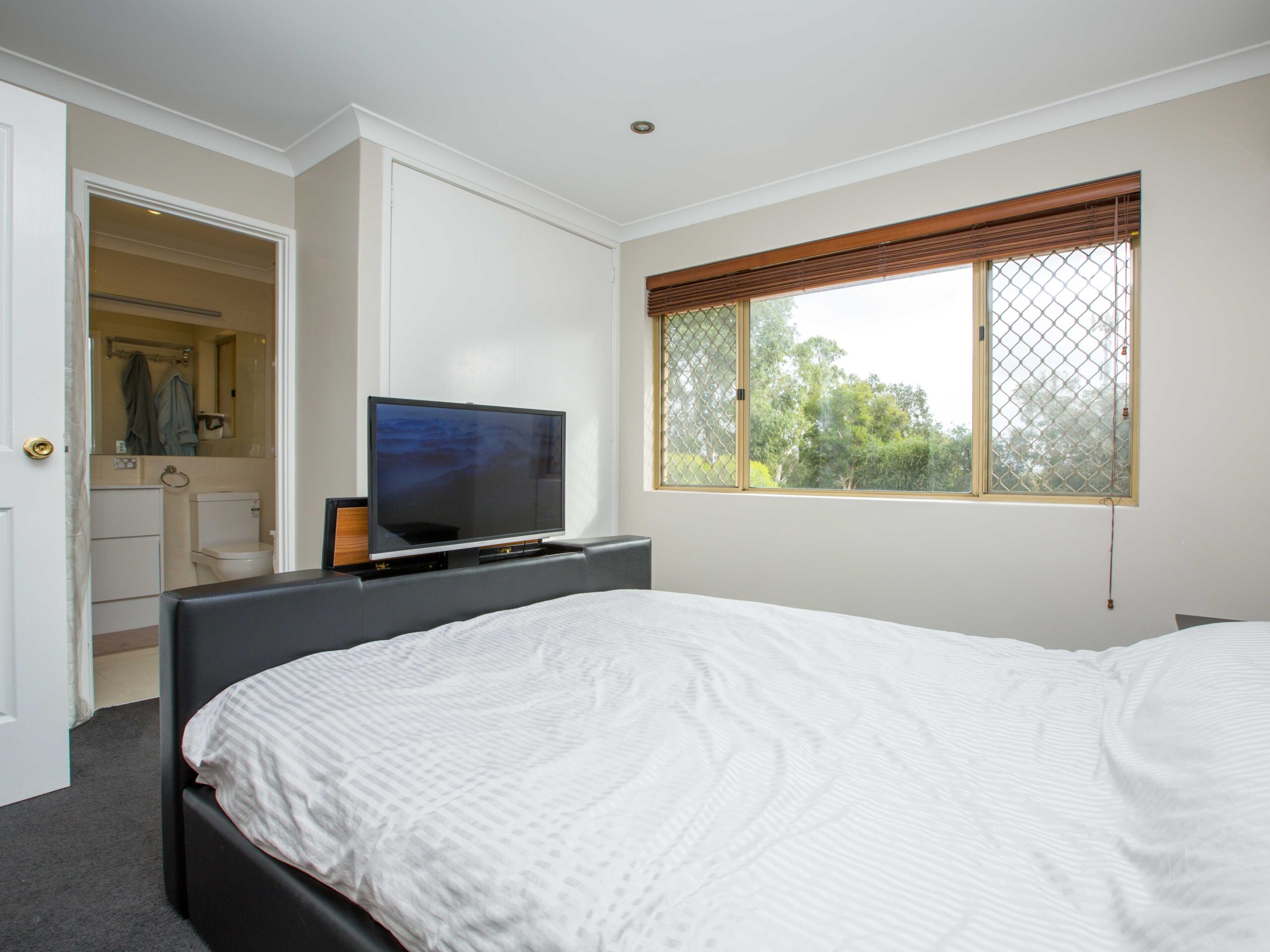 A carpeted staircase takes you upstairs to the master bedroom which has a modern ensuite and 2 extra bedrooms await. All bedrooms have built in robes. The second bathroom is also, crisp and modern.